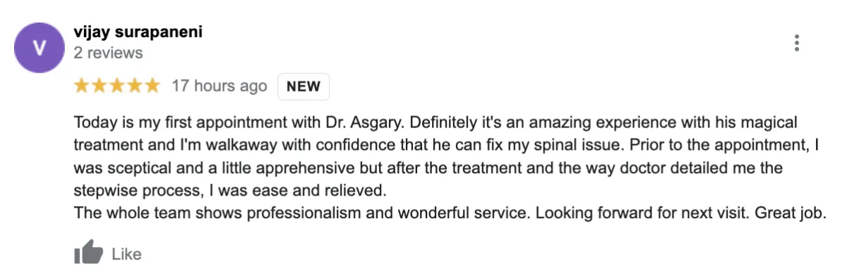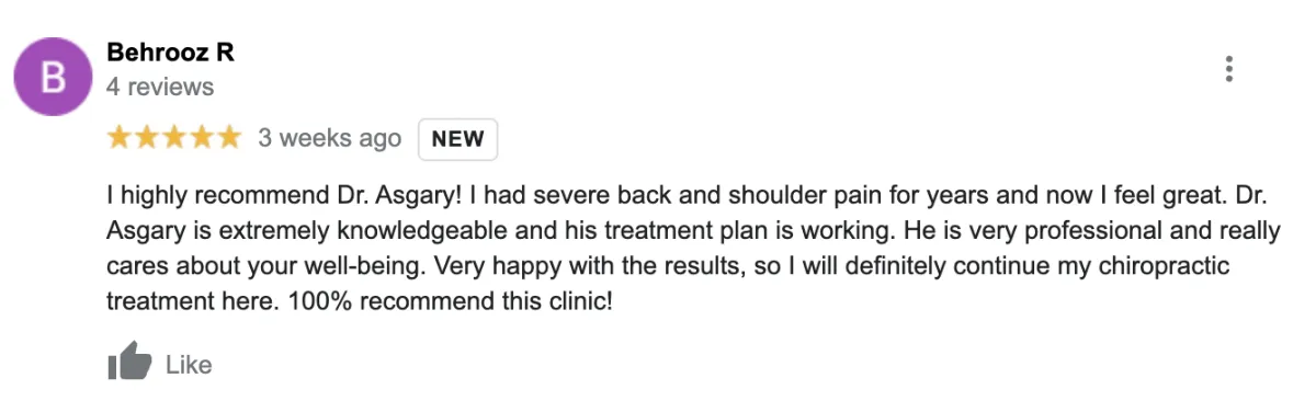 Dr. Massud Asgary is the Owner & Head Chiropractor at Spinal Solution & Wellness. He is registered with the College of Chiropractors of Ontario and believes patient education is essential in providing effective treatment for his patients. Dr. Asgary is also committed to on going learning and staying informed of the latest innovations and techniques in patient care.