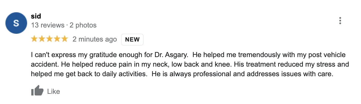 Dr. Asgary’s clinical area of focus includes conditions involving sciatic pain by utilizing Spinal Distraction Techniques. As a trainer himself, he understands the importance of chiropractic care and the effect it can have on the overall strength of ones body.